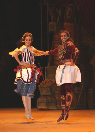 Dance with fans (participant of the opening night performance), soloist in the pirates dance (Le Corsaire by A. Adam. Production and new choreography by Alexei Ratmansky and Yuri Burlaka after Marius Petipa)