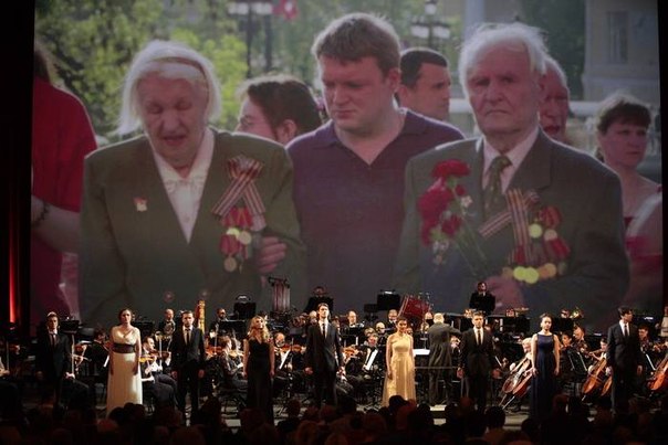 The cantata "Do not Feel Sorry for Us" by the Saint Petersburg composer Vladislava Malakhovskaya to the lyrics of the poets that participated in the Great Patriotic War was the main number of the concert's program. It was performed by the Bolshoi Theatre Orchestra soloists Kirill Filatov and Roman Denisov (violins), Dmitry Bezinsky (viola), Vyacheslav Chukhnov (cello) and others.