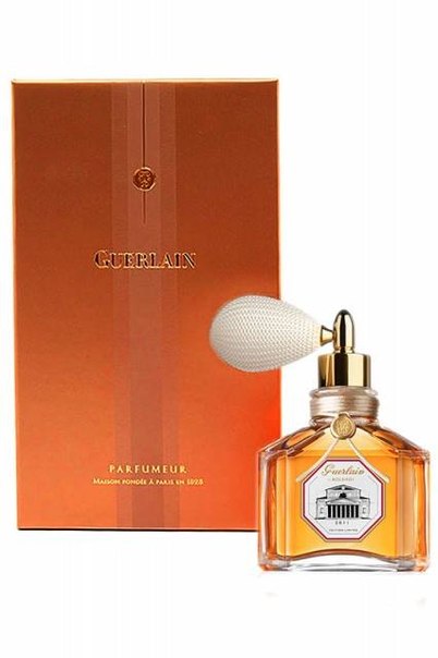 At the Guerlain workshops every flask, looking like antique chemist's phial, is decorated by hand with a beautiful The Bolshoi Theatre label, golden cord and an elegant black pear-shaped dozer.