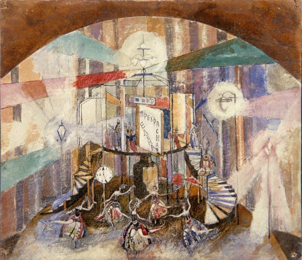 From April 22 "Georgy Yakulov. Master of multicolored suns" exhibition dedicated to famous theatre artist will be open at the State Tretyakov Gallery in Moscow. Great master designed scenery just for one performance at The Bolshoi, but certainly for a unique one. "La belle Hélène" operetta by Jacques Offenbach premiered on the theatre's stage. Yakulov created the one and only "play device" in The Bolshoi history: the playground with steep spiral staircases with the characters in grotesque bright costumes getting up and down has been running dynamically on an axis.