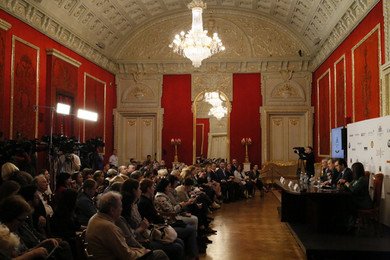 Vladimir Urin, General Director of the Bolshoi Theatre, Tugan Sokhiev, the Theatre’s Music Director and Chief Conductor, and Makhar Vaziev, Ballet Director, attended a press conference at which the Theatre’s plans for its next — 241st — season were presented to the public.