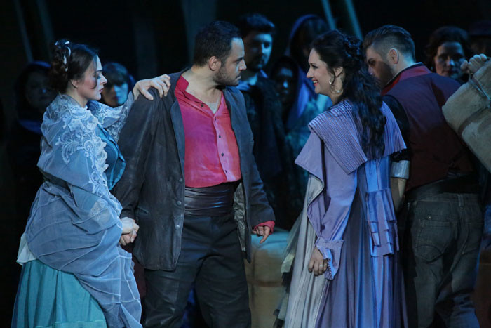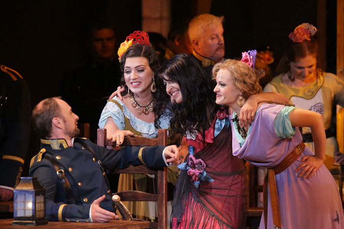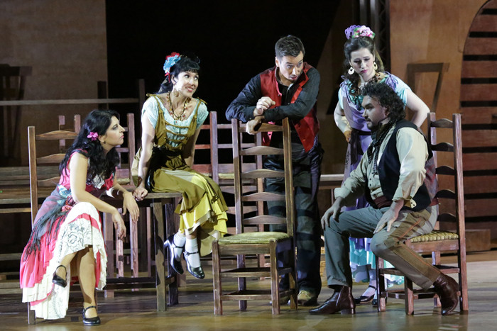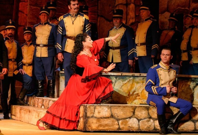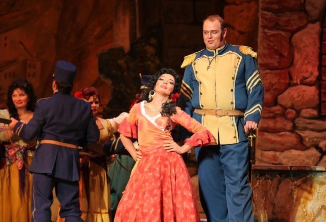 And the fact that absolutely everything is in the music, one just has to hear it, is at a great joy and a huge obstacle to the profession of opera singer and opera director. And the director’s goal here is, on the one hand, not to destroy the dramaturgy and, on the other, not to follow it literally, not to illustrate it. To progress towards an understanding of the musical dramaturgy from within, while at the same time and, not always following the music, plotting the behavior of the characters, is a most interesting and engaging pursuit. The music, after all, tells one what is really happening to a man, though this is not to say he will openly give vent to his emotions. A character may feel one thing and do something quite different and it is at this juxtaposition, counterpoint that a third meaning may arise. This is a story first and foremost about freedom. Real, total human freedom — in judgements, actions and, above all, outlook. And about love as one of its expressions, after all love and passion are always free. It seems to me that this for Bizet is the underlying theme”. Synopsis