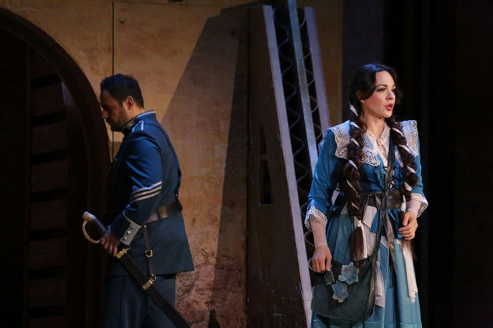 The Bolshoi’s 9th production of Carmen is by the famous theatre director and artistic director of the Russian Academic Youth Theatre (the Bolshoi’s neighbor on Theatre Square) — Alexei Borodin and his permanent co-author, the scenographer Stanislav Benediktov. Costumes are by Valentina Komolova, lighting by Damir Ismagilov, while the Spanish dance numbers are produced by the Spanish dancer-choreographers and famous performers of the flamenco, Rosario and Ricardo Castro. Music director of the produciton is the Bolshoi Theatre’s Music Director and Chief Conductor Tugan Sokhiev.