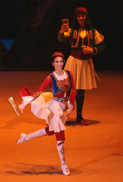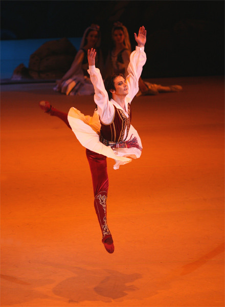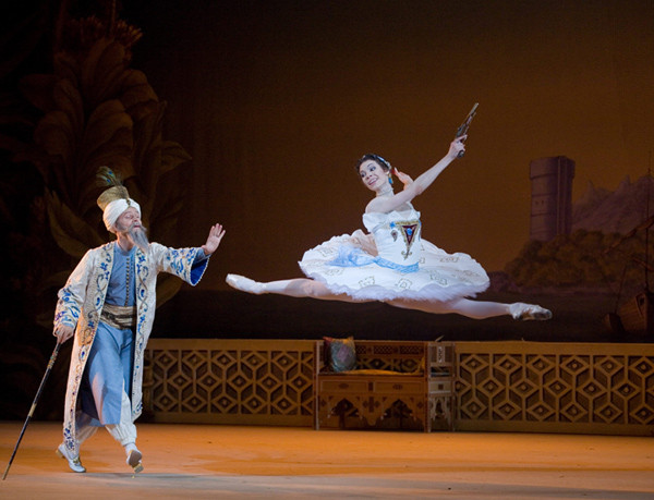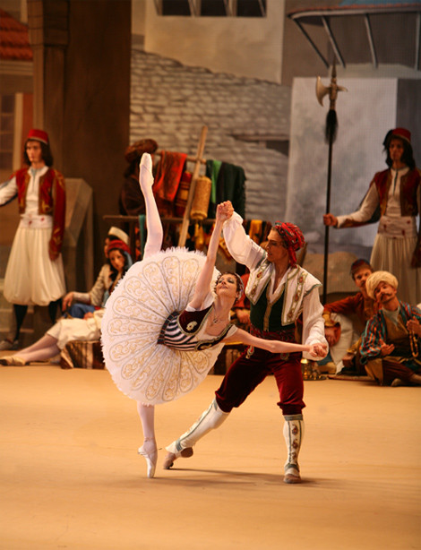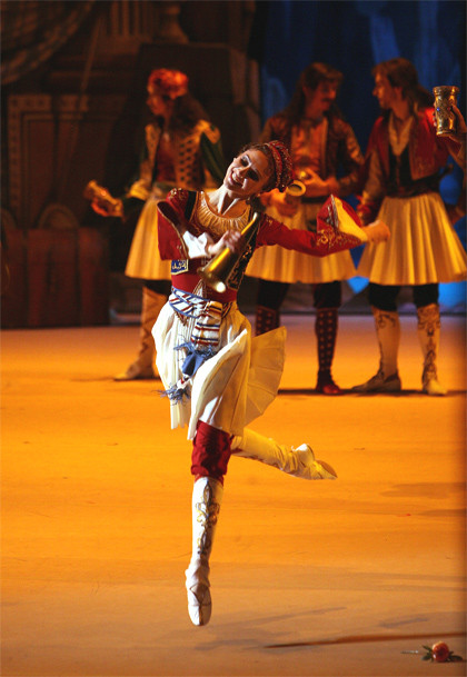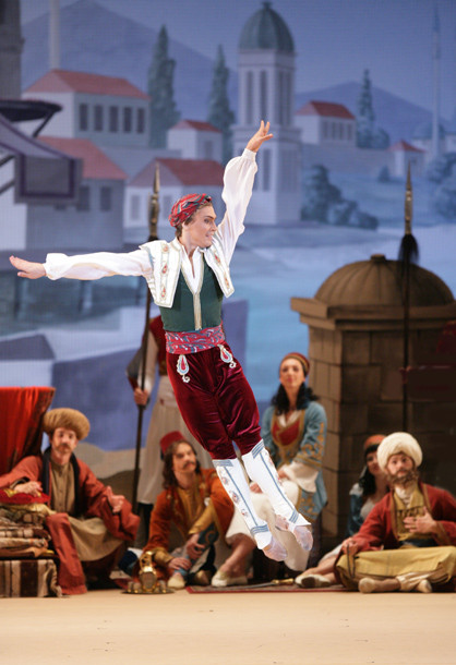 This Bolshoi Theatre production is intended for those who still seek for miracles in theatre. If you are moved to applaud the flooded with sunlight bazaar square which comes to view as the curtains are pulled back, if the piles of stage-prop pears and peaches delight your eye and make your mouth water, if you wish to penetrate to the gist of the touchingly naive pantomime via which these intriguing — dressed in attires that are out of this world — pasha-eunuchs-slave-girls communicate, if the magic of a shipwreck on stage excites you more than the real thing in the film version of the Titanic, then have no doubt, you are a potential fan of this Le Corsaire.