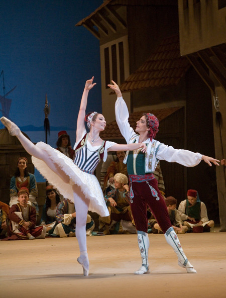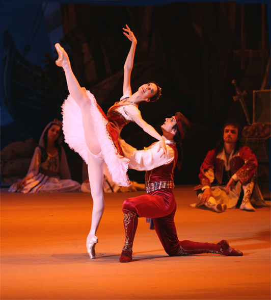 This is real “grand ballet” where there is enough dance for virtually the whole company at once, while the prima-ballerina proves her right to this title almost without a break. And although this Le Corsaire is far removed from its literary source (Byron’s poem of the same name, dear reader), its libretto is quite capable of satisfying society’s love of the pirate-romantic genre.