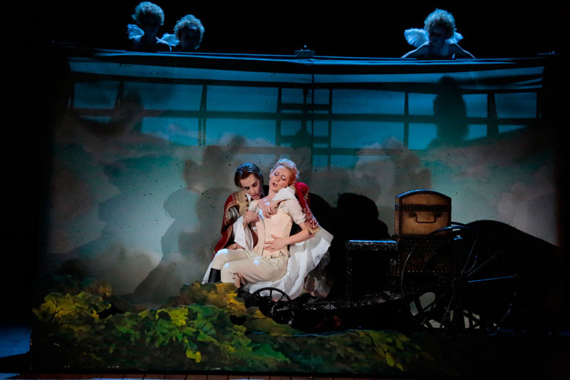 Dorabella cannot restrain her despair. The servant girl Despina reacts matter-of-factly and advises the sisters to look for new lovers. Alfonso decides to involve Despina partially in his plans. He introduces her to two exotic foreigners whom he says are in love with Fiordiligi and Dorabella: Despina’s job is to help them obtain their desires. The men’s disguise is complete, for Despina does not recognise them. The sisters are horrified that strange men have gained access to their house. Fiordiligi is offended to the core by their shameless courting and proclaims the steadfastness of her and Dorabella’s fidelity.
