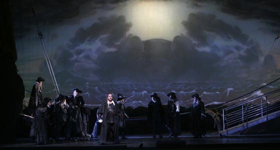 Driven by a violent storm to take shelter, Daland anchors his ship in the bay of Sandwike, some miles from his home port. Leaving his Steersman on watch, Daland and his crew go to rest. The Steersman, to keep himself awake, sings a ballad. But eventually he falls asleep. A strange ship appears. Its captain, the legendary Flying Dutchman, sings of the curse upon him. Once he swore he would try to round a cape even if it took until eternity; the devil took him at his word: his rate is now to sail unceasingly until the Day of Judgment unless he can find a woman "faithful unto death". Every seven years he may come ashore to search for one, and the time has now come again. Daland returns to the deck, sees the strange ship and rouses the Steersman. They hail it but are met with silence. Daland meets the Dutchman, who tells him of his wanderings and asks for DalandЃLs friendship and hospitality. In return he can offer untold riches. When the Dutchman discovers Daland has a daughter he asks to marry her. Daland is delighted. The Dutchman wonders whether this woman will be his saviour. A southerly wind has sprung up and DalandЃLs crew prepare to set sail, the Dutchman promising to follow.