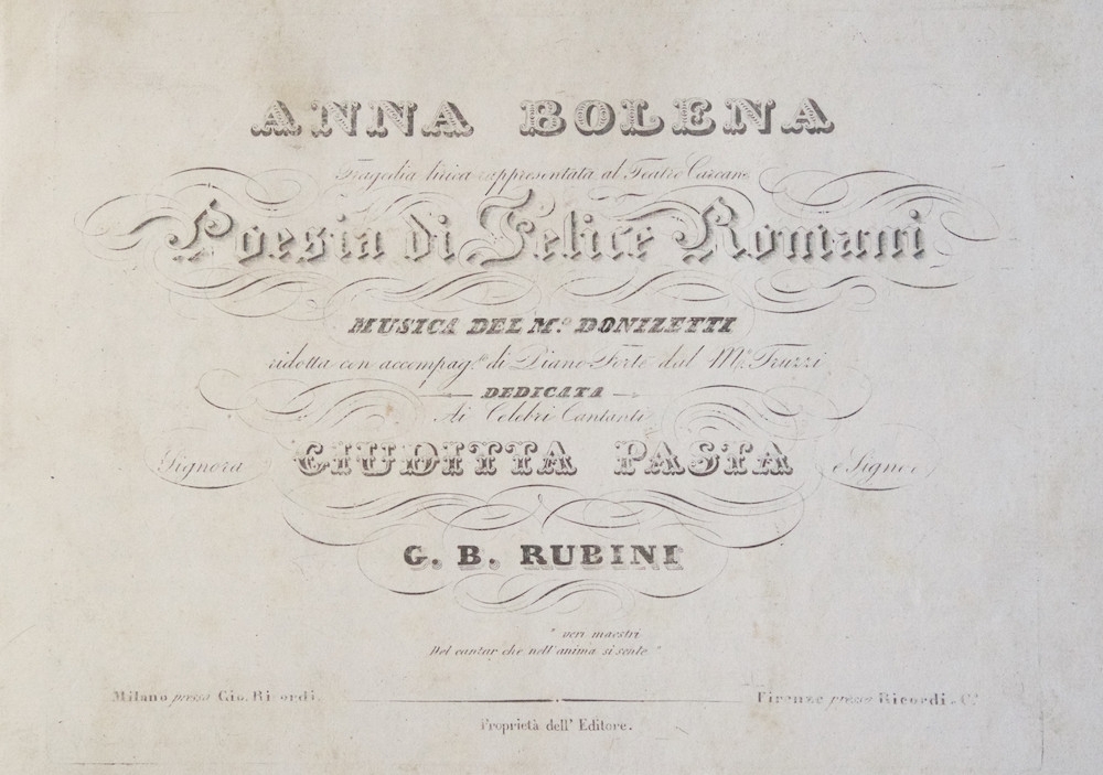 Anna Bolena is a tragic opera (tragedia lirica) in two acts composed by Gaetano Donizetti. Felice Romani wrote the Italian libretto after Ippolito Pindemonte's Enrico VIII ossia Anna Bolena and Alessandro Pepoli's Anna Bolena, both recounting the life of Anne Boleyn, the second wife of England's King Henry VIII.