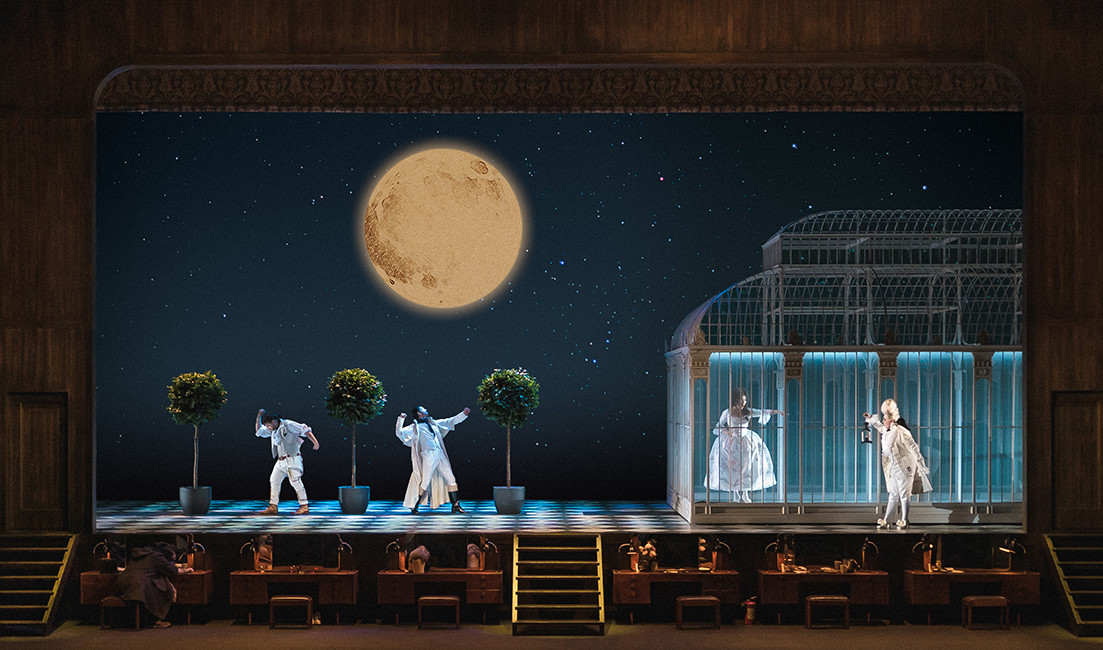 Don Basilio tells Doctor Bartolo that Alonzo is unknown to him. Could he be the Count himself? Bartolo decides to hurry matters: he sends Don Basilio to fetch the notary to arrange for the wedding. He shows Rosina the letter given to him by Alonzo and persuades her that both Figaro and Alonzo are procurers hired by Almaviva to deliver the girl into his hands. Rosina falls into the trap: sadly disappointed she accepts to marry her tutor and reveals to him the plat arranged by Figaro to aid her to escape. As soon as Bartolo goes out to call the gendarmes and have Figaro and Lindoro arrested the two appear at the window by means of a ladder from the street. There is a heavy storm. Rosina repulses resolutely Lindoro’s embrace but he makes himself known. He is Count Almaviva. The happy lovers are about to leave by the window with Figaro but they notice with distress that the Doctor has removed the ladder. However Figaro does not lose courage; in the meantime Basilio and the notary arrive and the wedding will take place at once although thoroughly different from the one planned. When Bartolo returns all is settled: the precaution of removing the ladder has played against him. In the end, when the Count declares that he will waive his right to a dowry, the old man’s fury is abated. Figaro puts off his lantern and a propitious darkness envelops the two lovers.