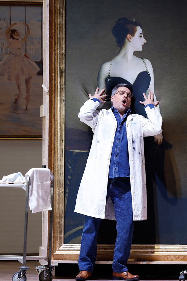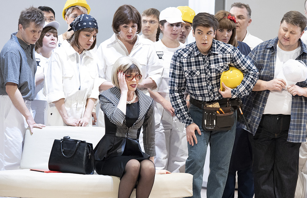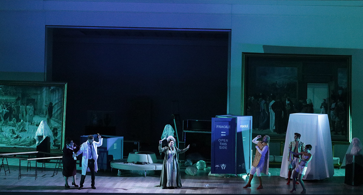 The Hotel of the Golden Fleur-de-lis turns to be a modern art gallery. The action unfolds on the eve of its imminent opening (the hotel’s ‘former’ hostess Madama Cortese becomes a museum curator – ed.). It is quite natural that all participants are always worried about something – just as in original libretto. As for our ‘historical’ characters… they are lost in a gallery, keep trying to find their belongings as well as the paintings they belong to. And in the finale we learn that they all come from one picture: Consecration of Charles X as King of France, presenting the very occasion the opera was written for.