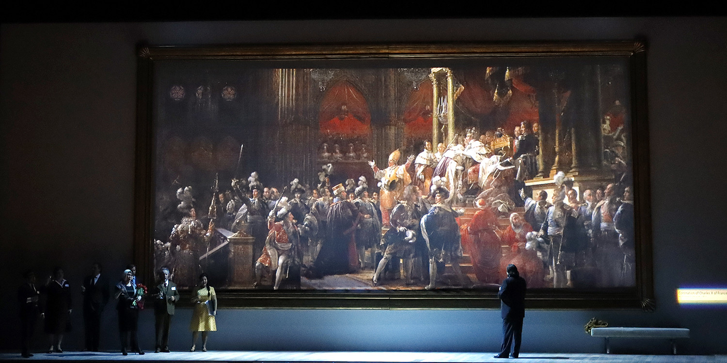 Il Viaggio a Reims was written to celebrate the coronation of King Charles X of France. This event was prepared as a lush gorgeous performance. The coronation took place in Reims Cathedral on 28 May 1825, and three weeks later, an opera commissioned to Rossini especially for the occasion was first performed at the Théâtre Italien, Paris.