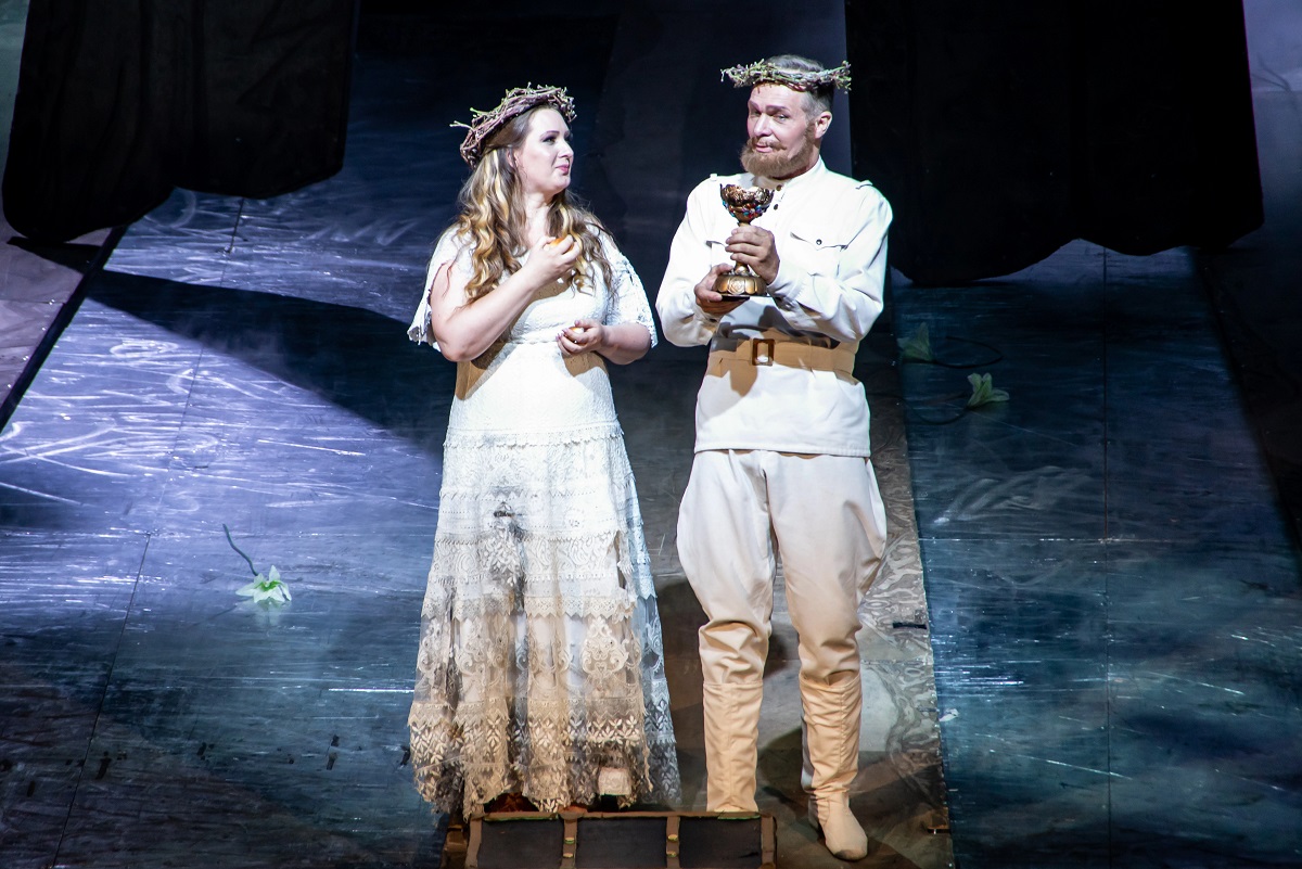 In the new production, freed from a strict historical setting in medieval Russia, the opera gains greater freedom in interpreting its characters. Among Kitezh’s defenders appear men in naval coats, while the silhouettes of the Tatar enemies evoke the armor of knights… Eras and epochs merge, and space undergoes similar — and at times literal — transformations: the forest, the hermit’s cell, the city, and the church become one — a place where each person chooses their own path.