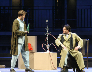 A tavern in Nuremberg. The Muse appears and reveals to the audience that her purpose is to draw Hoffmann's attention to herself, and to make him abjure all other loves, so he can be devoted fully to her: poetry. She takes the appearance of Hoffmann's closest friend, Nicklausse. The prima donna Stella, currently performing Mozart's Don Giovanni sends a letter to Hoffmann, requesting a meeting in her dressing room after the performance. The letter, and the key to the room, are intercepted by Councillor Lindorf (Dans les rôles d'amoureux langoureux), who is the first of the opera's incarnations of evil, Hoffmann's nemesis. Lindorf intends to replace Hoffmann at the rendezvous. In the tavern students are waiting for Hoffmann. He finally arrives and entertains them with the legend of Kleinzach the dwarf (Il était une fois à la cour d'Eisenach), and is coaxed by Lindorf into telling the audience about his life's three great loves.