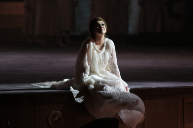 Lucia enters, delirious. She imagines she is still Edgardo’s bride, living in a blissful dream—but soon the illusion fades, and she remembers his curse. Desperate and broken, she longs for death.