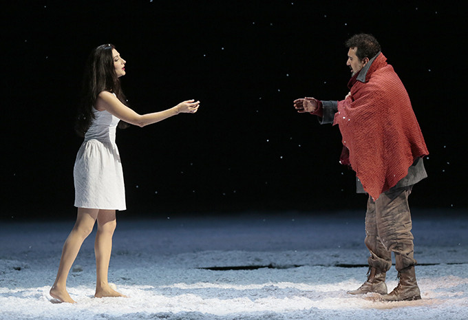 Snow Maiden calls on her mother, Spring-Beauty, who appears from a lake surrounded by flowers. Spring gives her daughter a garland and warns her to stay out of the light of the sun. Spring and her retinue sink into the lake. Before Snow Maiden can enter the protection of the forest, Mizgir appears. No longer able to resist, she professes her love for him. The Berendeyans, in ritual bride-and-groom pairs, arrive to celebrate Yarilo's Day. Mizgir introduces Snow Maiden as his bride. As she declares her love for Mizgir, a bright ray of sunlight appears, and Snow Maiden bids farewell: the power to love is the source of her demise. To the astonishment of the people, she melts. The inconsolable Mizgir drowns himself in the lake. The Tsar calms the horrified Berendeyans with the fact that this event has ended the fifteen-year-long winter that has befallen them. In response the people strike up a stirring hymn to Yarilo. The Snow Maiden is an opera in four acts with a prologue by Nikolai Rimsky-Korsakov, composed during 1880–1881. The Russian libretto, by the composer, is based on the like-named play by Alexander Ostrovsky (which had premiered in 1873 with incidental music by Tchaikovsky).