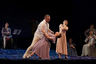 Under the direction of Evgeny Pisarev, the production remains entirely faithful to the historical period described in the libretto. Impressionistic scenography and nearly documentary-style costumes reflect the dual nature of Shchedrin’s music, in which lyricism is intertwined with contemporary folk songs and ditties. “Of course, the central theme is a lyrical story of unfulfilled love,” explains the director. “It is about the brokenness of the souls of strong people. These people have been scarred by war, suffocated by the harsh realities of collective farm life. And yet, they remain harmonious and full of the desire to live and love.”