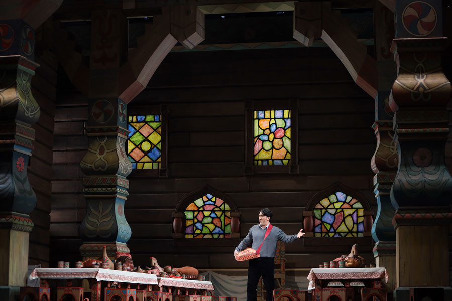 Sadko arrives at his wife’s, Lubava Buslaevna. She has waited for him all night long and rushes to embrace him, but he turns her down. Sadko has made up his mind to go to the harbour and make a bet that there are three goldfishes in Lake Ilmen.