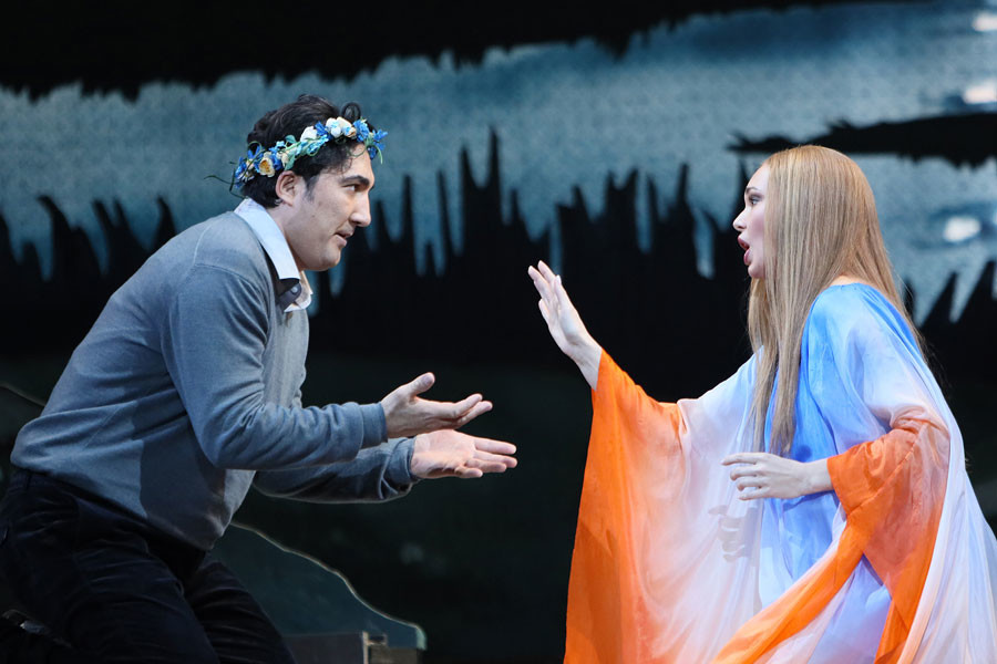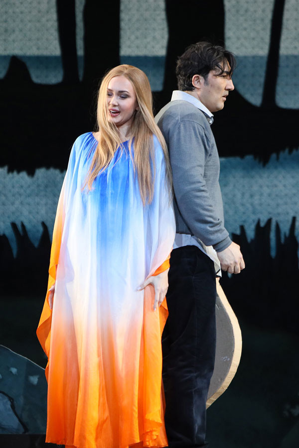 Sadko is asleep to the sound of Volkhova’s lullaby. Volkhova bids him farewell forever. Awake, all Sadko can hear is Lubava’s wailing. Everyone gathers to greet Sadko.
