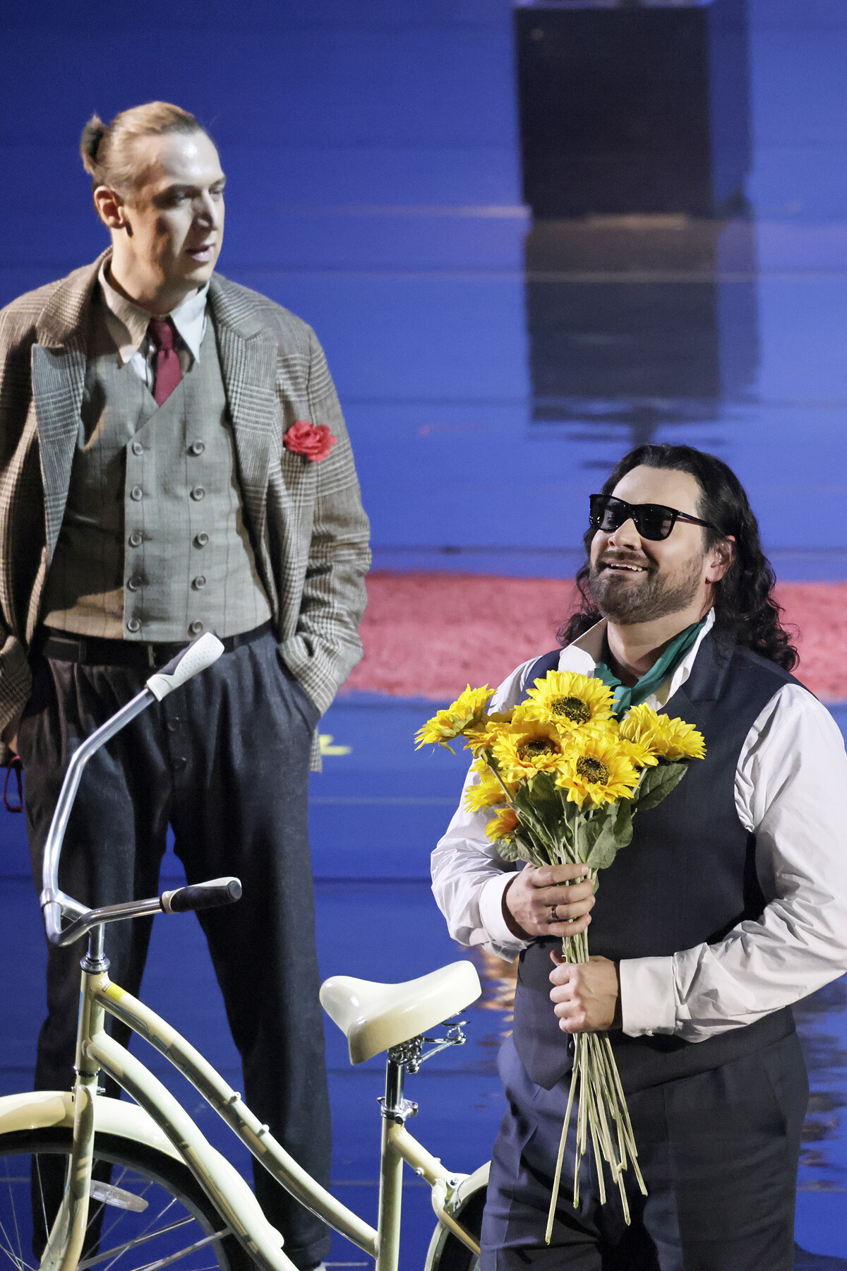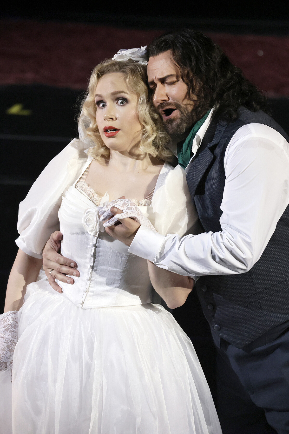 Don Giovanni and Leporello, in search of fresh adventures, come across Donna Elvira, who was seduced and abandoned by Don Giovanni and has been looking for him to get her revenge. As soon as the rake recognizes Elvira as one of his previous amours, he goes off, leaving Leporello to explain to the lady the reason for his deserting her so suddenly. The servant then rattles off a long list of his master’s conquests. Exit Donna Elvira, who is determined to punish her perjurious lover. Zerlina and Masetto, with a group of peasants, are celebrating their approaching marriage. Don Giovanni enters with Leporello and pays court to the bride. He invites the whole wedding party to his country house, and undertakes personally to escort Zerlina there. Masetto is led away on a pretext by Leporello, but has clearly grasped the situation and is anxious to put matters straight with Zerlina. Left alone with the girl, Don Giovanni attempts to seduce her with gallant promises. But the unexpected arrival of Donna Elvira, who denounces her betrayer and takes Zerlina aside, prevents him from implementing these designs. Meanwhile Donna Anna and Don Ottavio arrive. Not recognizing Don Giovanni as the Commendatore’s assassin, they seek his assistance in punishing the culprit. When Donna Elvira reappears and reports her unfaithful lover’s misdeeds, Don Giovanni slips away. But Donna Anna has recognized his voice as that of her seducer and of the man who killed her father. She urges Don Ottavio to avenge the outrage without hesitation. Don Ottavio in his turn vows to himself to carry out the wishes of his beloved. In the meantime Don Giovanni directs preparations for the festivities, during which he hopes to possess the attractive young Zerlina.