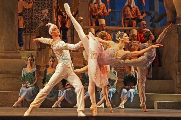 In 1900 a revival was mounted to mark the 40th anniversary of dancer Pavel Gerdt’s artistic career. He took the role of Solor in a largely unchanged production. The entrance of the Shades was presented on a darkened stage (originally it had been lit brilliantly), and the number of dancers expanded from 32 to 48. It appears that much of the music was shortened. Although the dancers received glowing reviews, Petipa’s choreography did not fare so well at this outing «perhaps more boring than long and uninteresting.» The ballet was first seen outside Russia (performed by the Kirov Ballet) in London, July 4, 1961 excerpted as The Kingdom of the Shades. it was during this tour that Nureyev defected to the West. Two years later he staged The Kingdom of the Shades for the Royal Ballet.The full length ballet regained popularity with Nathalia Makarova’s sumptuous restaging of the work for the American Ballet Theatre in 1980.
