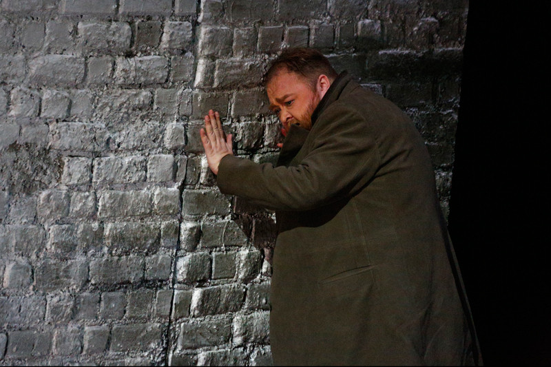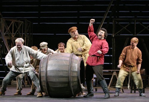 Scene 6. Although the path to happiness now seems clear, Katerina’s soul knows no happiness: her conscience troubles her. Even on the day of her marriage to Sergei she stands by the cellar containing the corpse of Zinovy Borisovich… A covetous Shabby Peasant has long believed the cellar to be full of good wine. After the couple leave for church he breaks open the lock, finds the corpse and hastens off to the police in terror.