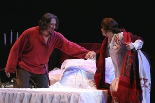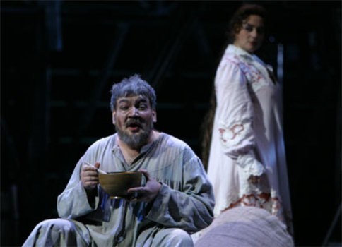 Scene 4. Boris Timofeyevich cannot sleep, he sees thieves everywhere. He remembers how he found it hard to sleep in his younger years too, but for a different reason: he loved to stroll past the windows of other men’s wives. Even now he enjoys reflecting on the old days and having a glimpse at his son’s young wife. And so he sees Sergei slinking out of Katerina’s apartments. Old Ismailov is merciless. Katerina’s pleas are to no avail: Sergei is beaten half to death before her very eyes then locked in the storeroom. In furious madness Katerina serves her loathsome father-in-law mushrooms tainted with rat poison for dinner. As he dies, the old man confesses to the priest and accuses his daughter-in-law of the foul deed.