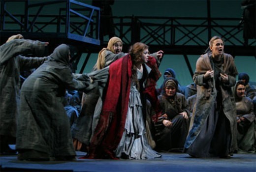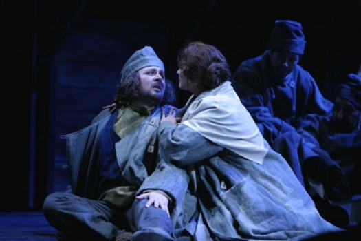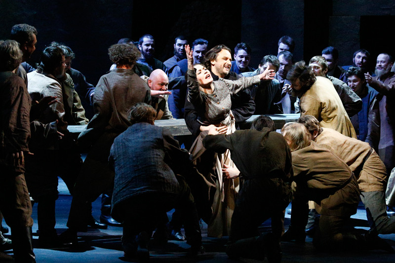 Scene 9. A group of convicts headed for Siberia has settled for the night on the banks of a river. Sergei and Katerina are among them. Now Sergei has no reason to pretend he is in love. He accuses Katerina of being the source of all his miseries and that she has brought him to this. In front of everyone he openly flirts with the young convict Sonyetka; together they poke fun at the “rich merchant’s wife”. Sergei seeks Sonyetka’s favour, but she demands a present – Katerina’s warm stockings. Sergei comes to Katerina Lvovna and tricks her into giving him the stockings by feigning sickness. The convicts roar in laughter at the abandoned Katerina. It is time for debts to be settled. Sergei’s treachery is the last straw for Katerina: she realises the true horror of everything that has passed. Neither the drum roll reveille nor the kind words from the Old Convict can restore her energies. Death is the key to salvation… She thrusts Sonyetka into the water and then plunges in after her. The swift current carries them both away, and the Old Convict’s bitter voice seems to hang over the surface of the river: “Oh, why is this life so dark and terrifying? Is man born for such a life?”