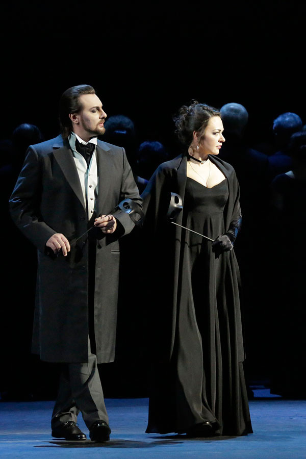 Herman appears at the balcony doors. He declares his love to Liza. There is a loud knocking at the door. The old Countess has come to Liza’s room herself to find out what the noise is about. Hiding, Herman remembers the legend of the three cards. Overcome by a burning desire to find out the secret of the winning cards, he immediately forgets his love for Liza. The Countess leaves the room and Gherman comes to his senses. He again tells Liza he loves her. She begs him to leave but, won over by the strength of his passion, she admits to reciprocating his feelings.