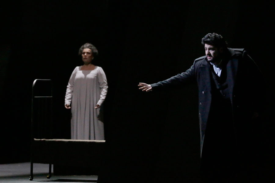 Hearing the noise, Liza runs into the bedroom. Catching sight of the dead Countess, she exclaims in despair: „So it was the cards, not me you were after!”
