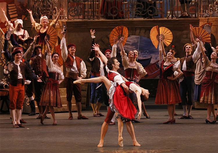 In Barcelona there is festive animation in the air. Kitri, daughter of the innkeeper, is flirting with Basilio, the barber, who is in love with her. Finding them together Lorenzo, Kitri’s father, chases Basilio away: the barber is no fit match for his daughter. Lorenzo intends Kitri to marry Gamache, a rich nobleman. Kitri refuses outright to submit to her father’s will.