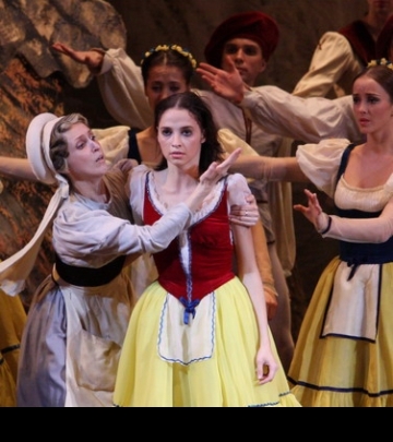Presented with one interval. Running time: 2 hours 20 minutes. Additional informationCharacters and performers Synopsis Act I A small, peaceful village, bathed in sunlight. It is inhabited by simple, artless people. Giselle, a young peasant girl, is rejoicing in the sun, the blue sky, the singing of the birds and, most of all, in the happiness of pure, trusting love which has lit up her life. She is in love and is confident that she is loved. The gamekeeper, who is in love with Giselle, tries in vain to persuade her that Albrecht, her loved one, is not a peasant at all but a nobleman in disguise and that he is deceiving her.