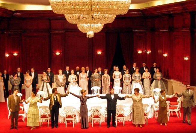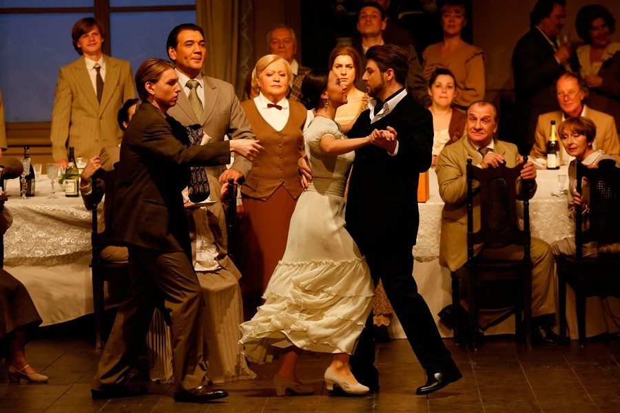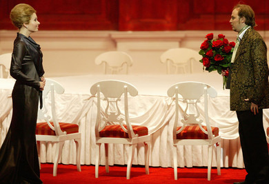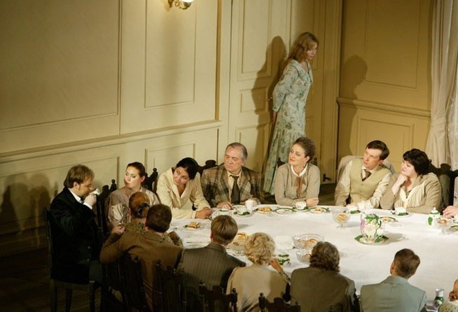 The man responsible for this new, virtually chamber production of Tchaikovsky’s opera is Dmitri Tcherniakov, whose large scale opera productions have garnered many prizes. At the Bolshoi, Tcherniakov continues to develop the other trend in his staging stylistics, to which he put a start in his previous production for the Theatre’s New Stage - Stravinsky’s The Rake’s Progress. SynopsisScene 1 Madame Larina. Her daughters: Tatiana, Olga. Nurse. Vladimir Lensky. Eugene Onegin. Neighbors, guests. The Larins’ home. Lensky, a neighbor of the Larins and Olga’s bridegroom, unexpectedly brings his friend Onegin, recently arrived from the capital, to visit them. The unknown guest causes a kerfuffle in the dailyroutine of the Larin household: no one hides their interest in him. Onegin doubts in the wisdom of his friend’s choice. The meeting with Onegin has made a deep impression on Tatiana.