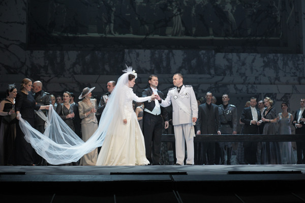 Raimondo interrupts the marriage celebrations to tell the guests that Lucia has gone mad and killed her bridegroom Arturo. Lucia enters. In the aria 'Il dolce suono' she imagines being with Edgardo, soon to be happily married. Enrico enters and at first threatens Lucia but later softens when he realizes her condition. Lucia collapses. Raimondo blames Normanno for precipitating the whole tragedy.