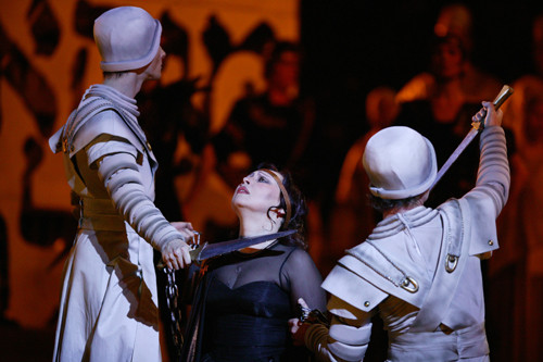 The chamber in the King’s palace in Babylon A parchment gets in the hands of Abigaille, from where she finds out that her mother was a slave. It means that the legal heiress of the throne is Nabucco’s younger daughter – Fenena! Power-loving Abigaille is full of anger and resolution to try to obtain the fall of Fenena, and also to get to know the happiness of mutual love. The high priest of Baal comes in with the news that the atheist Fenena frees the captive Jews. He calls Abigaille to take power in her hands. Everything is ready for the coronation. The troops, defrauded by the rumour that Nabucco is dead, is ready to become to Abigaille’s colours. The princess revels with the thought of her power. All the people acknowledge her, and the King`s daughters bow to the bondmaid! Zaccaria gathers the captive Jews for the prayer. He predicts the coming triumph of the God of Iegova. The Levites curse and send away Ismaele, thinking of him as a traitor. Vainly Ismaele is trying to justify himself. The accursed don’t have brothers – the Levites answer him.