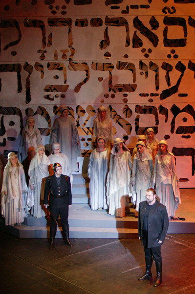 "Opera "Nabucco", in spite of the fact that it refers to the early period of Verdi’s creative work, is one of the most interesting works by him. Unfortunately, at this time a day the title of the opera tells nothing to the audience and in no way is taken in by them. The story that is opened in the libretto by T.Solera doesn’t invoke the vivid response in the audience, as it is very old, almost mythological. To feel it deeply, it is important to realistically and even naturalistically portray on stage the story of the King Nabucco. This story took place in the time when there were awful wars with the aim to annihilate, the cities were ransacked, and genocide and assimilation were done. As a result of one of these wars from the Solomon’s Temple only the Wailing Wall was left. People pray and cry near it, this is a symbol of their believes in the epoch of total unbelief, nihilism, the loss of spirituality, idealization of the extent, number and quantity that today are overall urgent. We’ve decided that this bloody and terrible story should be depicted with the help of all these unique technical novelties that the belarussian opera theatre has. Our aim is to bring this opera closer to the modern, particularly young audience, by means of modern machinery, video projection and original stage language."