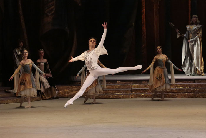 In his place Raymonda sees an Eastern knight whom she does not know. Не confronts her with а passionate declaration of his love. Raymonda is deeply perturbed and falls unconscious to the ground. The mirage vanishes.