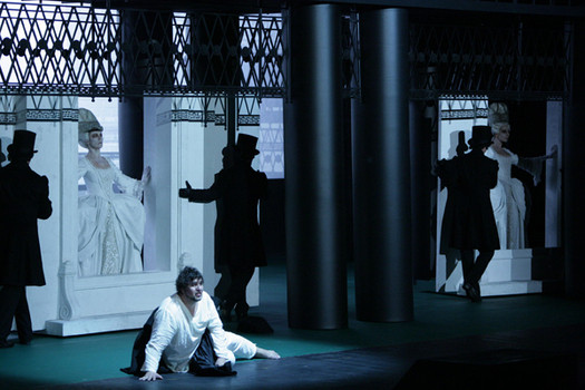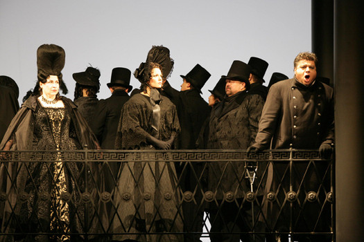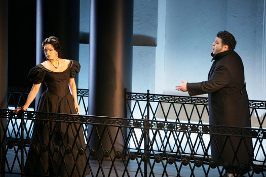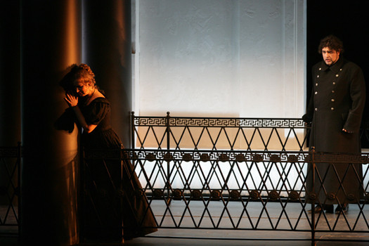 Herman appears at the balcony doors. He declares his love to Liza. There is a loud knocking at the door. The old Countess has come to Liza’s room herself to find out what the noise is about. Hiding, Herman remembers the legend of the three cards. Overcome by a burning desire to find out the secret of the winning cards, he immediately forgets his love for Liza. The Countess leaves the room and Gherman comes to his senses. He again tells Liza he loves her. She begs him to leave but, won over by the strength of his passion, she admits to reciprocating his feelings.