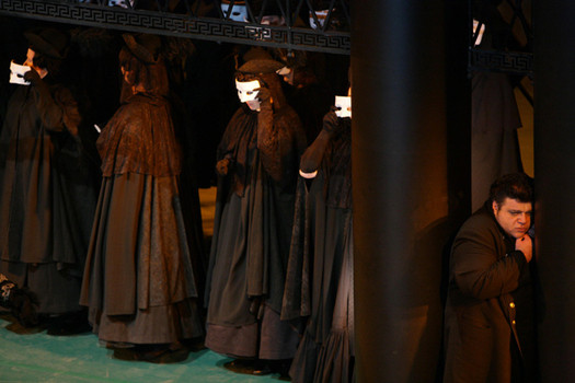Hearing the noise, Liza runs into the bedroom. Catching sight of the dead Countess, she exclaims in despair: „So it was the cards, not me you were after!”