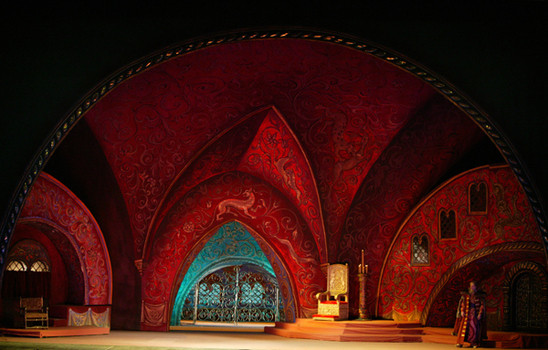 Chamber in Oprichnik Grigory Gryaznoy’s house. Grigory is desperate: he has fallen passionately in love with Marfa, daughter of the merchant Sobakin, but she is already betrothed to the young boyar Ivan Lykov. In order to put his love out of his mind, Grigory called some guests to a drinking-party. One of them is the Tsar’s foreign physician Bomelius, the other is Lykov.