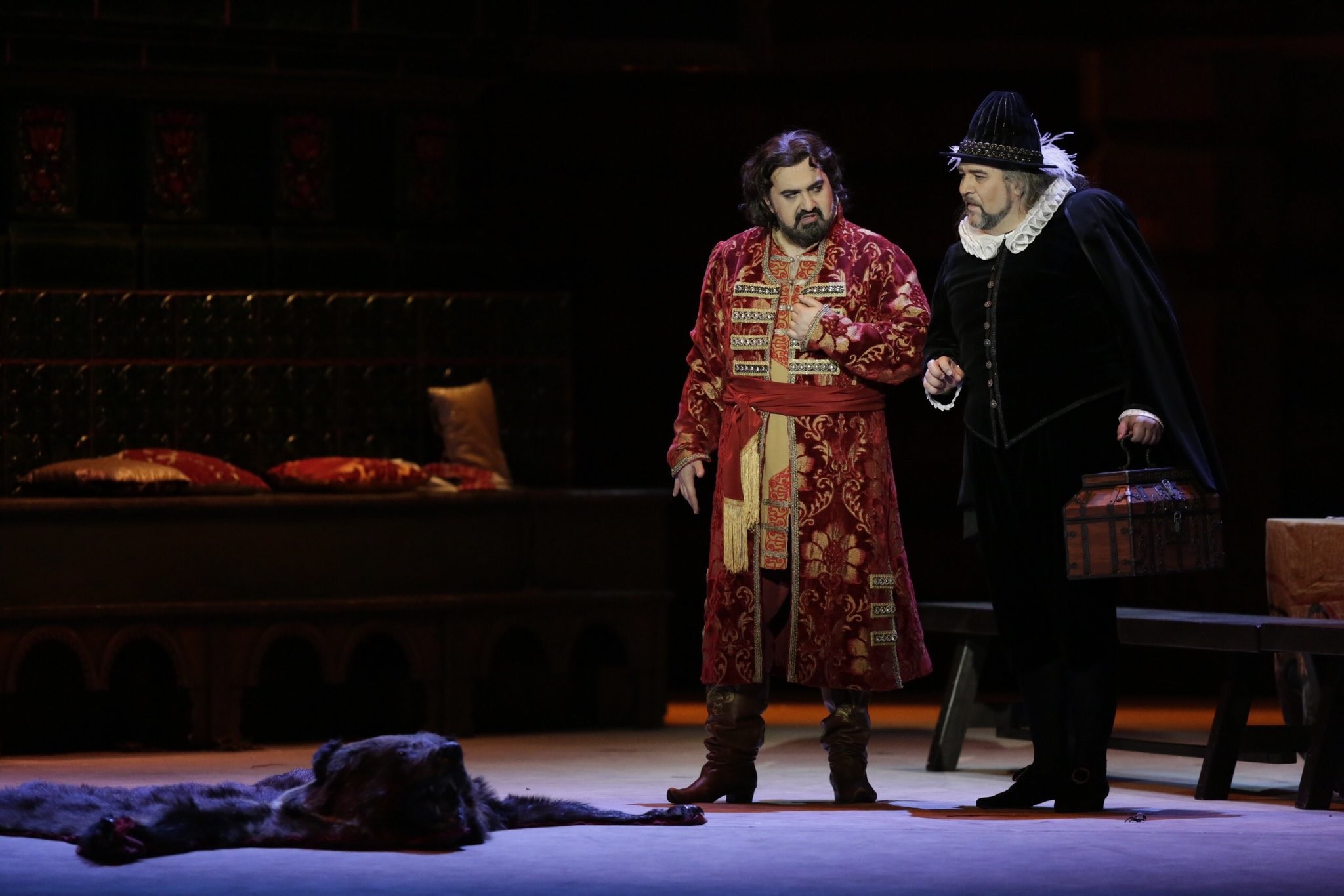 Chamber in Merchant Sobakin’s house. Sobakin tells Ivan Lykov and Gryaznoy that Marfa and Dunyasha have been summoned to the palace along with 10 other girls as the Tsar intends to choose himself a bride. This alarms both Lykov and Gryaznoy. Sobakin tries to calm Lykov down. Gryaznoy offers to be Lykov’s best man at his wedding.