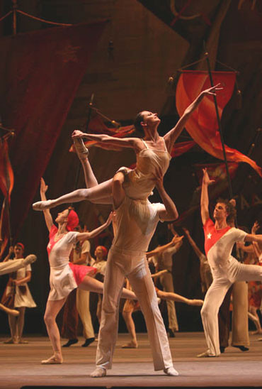 …And all this in choreography which one might say is gripping in its own right: for every development in the action there are different types of dance: classical and free dance, the neo-classical and the grotesque, 1 elements of folk dance and of the movements of sportsmen... An explosion of dance takes possession of every corner of the huge stage. Here the vortex of life itself - rapid, variegated, riveting. Here the echoes of sporting festivities, genre ’street’ sketches, shows given by the artists of the agit-prop theatre company…In this feerie-like flow, the duets of Rita and Boris, based on the most beautiful, high lifts, are like peaceful oases, wreathed in poetry".