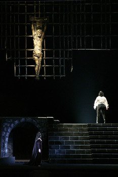 Spoletta interrupts: faced with capture, Angelotti has killed himself. Tosca, forced to decide, agrees to Scarpia’s proposition. The baron pretends to order a mock execution for the prisoner, after which he is to be free. Spoletta leaves.