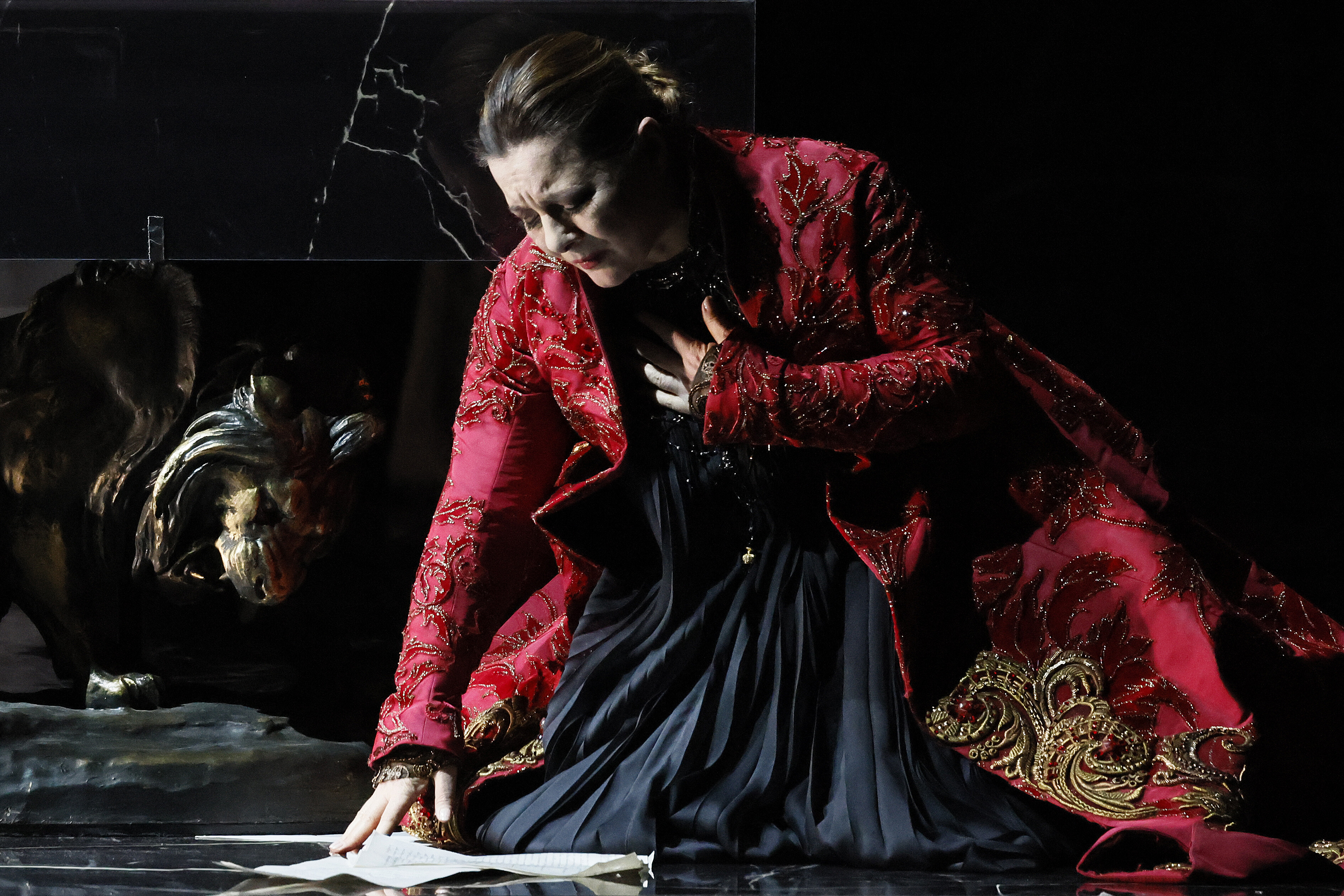 Napoleon’s army is supposed to have suffered defeat, and the Sacristan returns with choirboys who are about to sing a Te Deum. Their excitement is silenced by the entrance of Baron Scarpia, chief of the secret police, in search of Angelotti. When Tosca comes back looking for Mario, she encounters Scarpia, who shows her the Attavanti crest on a fan he has just found. Thinking Mario faithless, Tosca tearfully vows vengeance and leaves as the church resounds with the Te Deum. Scarpia has the diva trailed, scheming to get her in his power (“Va, Tosca!”).