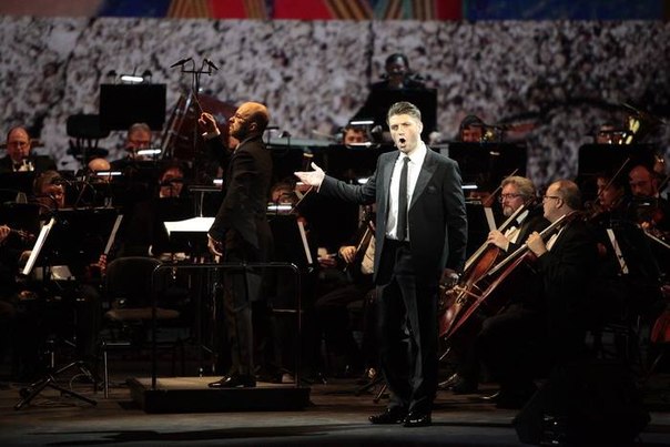 The cantata "Do not Feel Sorry for Us" by the Saint Petersburg composer Vladislava Malakhovskaya to the lyrics of the poets that participated in the Great Patriotic War was the main number of the concert's program. It was performed by the Bolshoi Theatre Orchestra soloists Kirill Filatov and Roman Denisov (violins), Dmitry Bezinsky (viola), Vyacheslav Chukhnov (cello) and others.