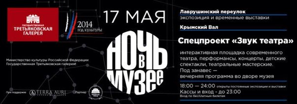 19.00-21.00. 21.00-00.00. 10.00-00.00. The Bolshoi Theatre will take part in the international festival "Night of Museums"! The Bolshoi Museum will spend this night at the Tretyakov Gallery on the Krymsky Val. The visitors will receive an additional bonus from the Bolshoi Theatre - it will be an interesting story of life and creative work of a wonderful designer Fyodor Fedorovskiy, who was the Bolshoi Theatre chief designer for a long time (a large exhibition of his works is now open at the Tretyakov Gallery on the Krymsky Val) and an entertaining demonstration - they will show how sets and props are made. All those interested will be able to participate in this process. Before this game at the theatre workshops, the visitors will be able to listen to participants of the Bolshoi Theatre Young Artists Opera Program perform; this will surely create the right atmosphere for interactive communication. The international festival "Night of Museums" is very popular nowadays; it marks the International Museum Day, which is celebrated on May 18th. The "Night of Museums" is organized on a preceding Saturday: entrance to museums is free this day. Naturally, at first this campaign was very much theatricalized and demonstrated the synergy of various art genres and kinds of art. The Bolshoi Theatre takes part in this event for the first time. The decision to do so was inspired by the grand personal exhibition of Fyodor Fedorovskiy, organized by the joined effort of the Bolshoi Theatre Museum, A.A.Bakhrushin State Central Museum and the State Tretyakov Gallery. Fedorovskiy was not only an outstanding theatre designer; he also established and was in charge of theatre workshops that the Bolshoi Theatre is so proud of today.There will be four spots at the Tretyakov Gallery on the Krymsky Val, where the Bolshoi Theatre Museum will open mini-workshops; each of those workshops will specialize in different things. In the first one you, dear guests, will be able to participate in making a set, based on a sketch. In the second one visitors will be shown how theatre miniatures are created. In the third one visitors will have a chance to make some props. The fourth one, naturally, will pay tribute to theatre costumes. All demonstrations and talks will be connected with Fedorovskiy's works one way or another. For example, participants of the props workshop will re-created "household items", which were once made for the production of the opera "Sadko". The program of the concert, starring the Bolshoi Theatre young singers and orchestra, includes fragments of operas that were pivotal to Fedorovskiy's career. The Bolshoi Theatre at the Tretyakov Gallery on the Krymsky Val May 17th 2014 Program and schedule Concert starring the Bolshoi Theatre young singers and the Bolshoi Theatre Orchestra N. Rimsky-Korsakov Orchestra overture for Act 3 and Levko's Song from the opera "May Night" Boris Rudak Aria of Snow Maiden from the opera "The Snow Maiden" Olga Kulchinskaya A. Borodin Duet of Konchakovna and Vladimir Igorevich from the opera "Prince Igor" Aleksandra Chukhina Arseny Yakovlev Arioso of Yaroslavna Maria Lobanova Aria of Konchak Daniil Chesnokov M. Mussorgsky "Dawn on the Moscow River", the orchestra overture from the opera "Khovanshchina" The talk about Fyodor Fedorovskiy's life and creative career A quiz Master-classes on making set, production miniatures, props and costumes Organized by the Bolshoi Theatre Museum 6 p.m. - midnight - as a part of the Festival Program